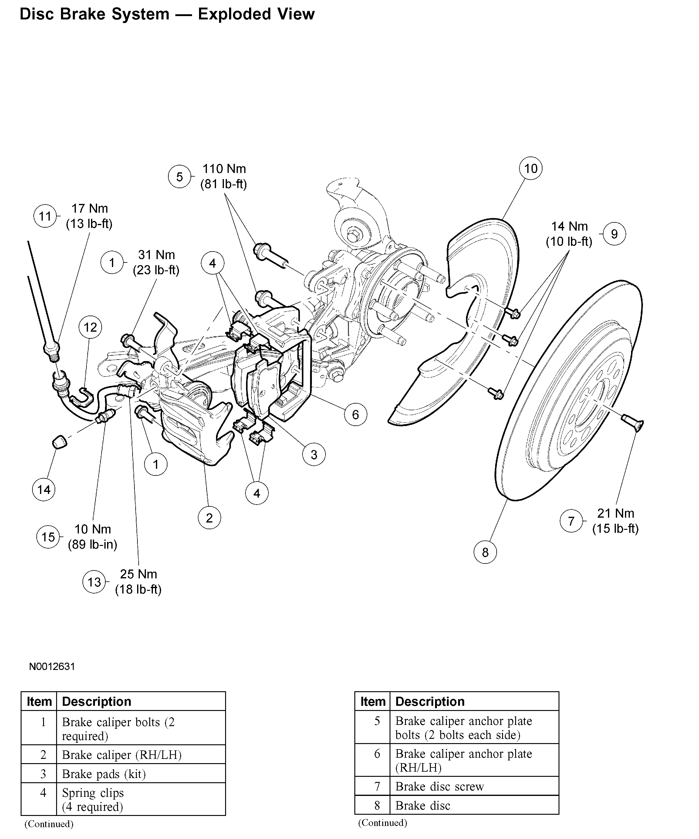 Install a new brake caliper anchor plate if it is worn or damaged.
