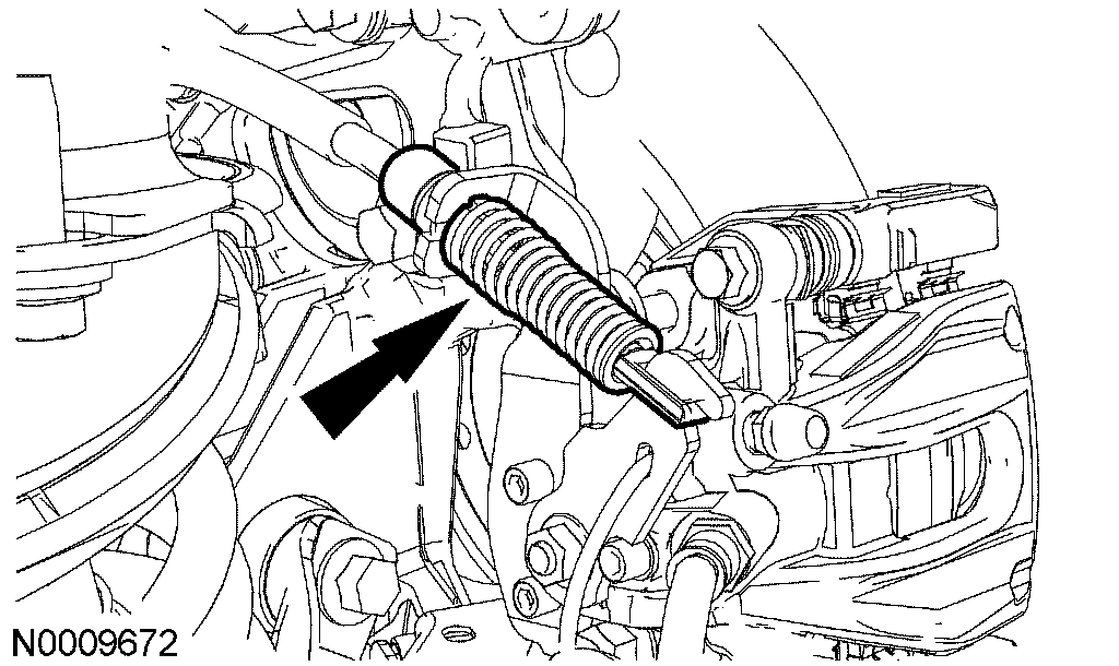 9. With the vehicle engine running, apply 89 - 133 N (20 - 30 lbs.) of pressure on the brakes for approximately 1 minute, to make sure the brake pads adhere to the caliper before any contamination can be introduced.