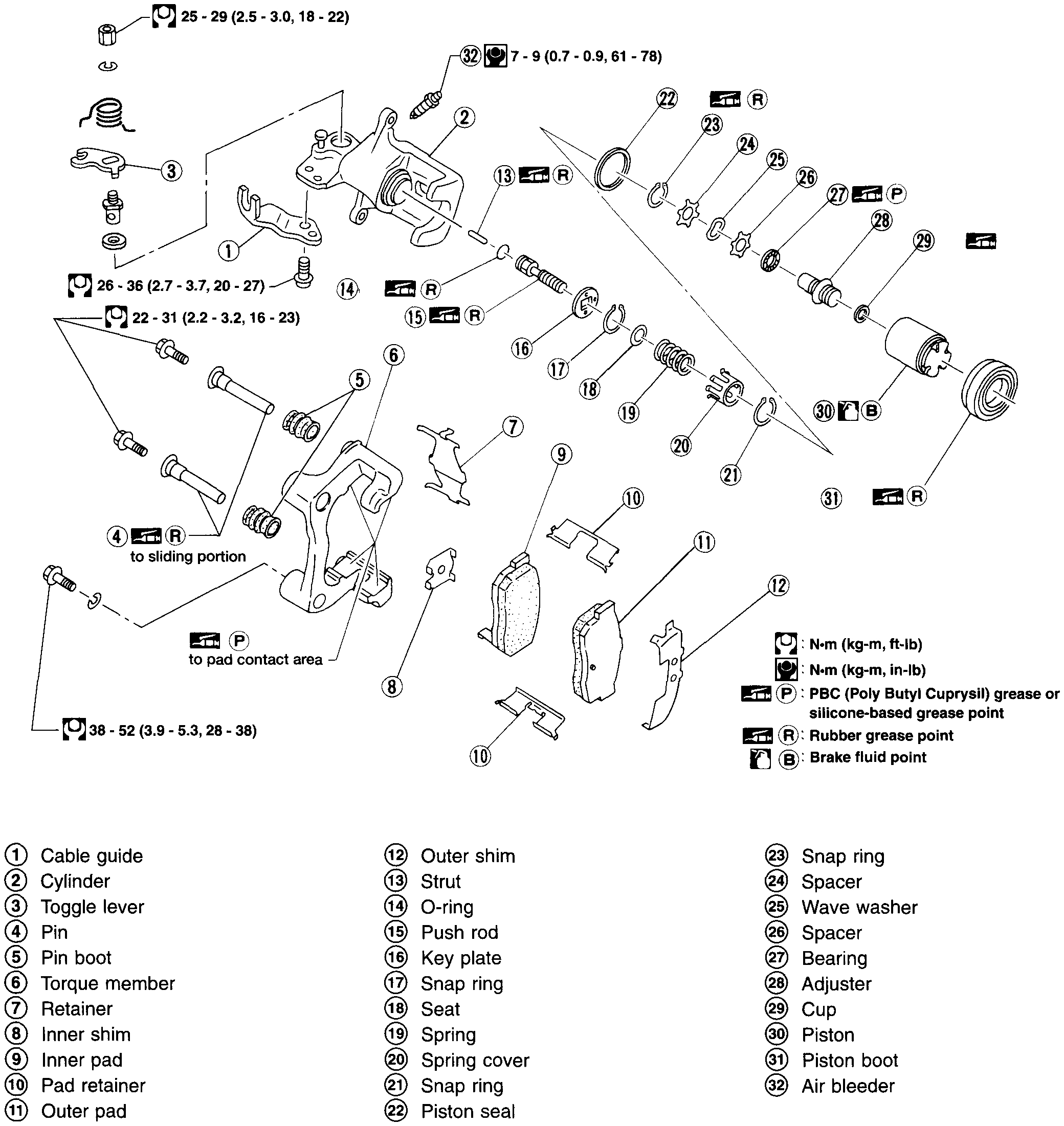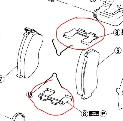 4. Then remove pad retainers, return spring and inner shim and cover (if equipped) and outer shim.