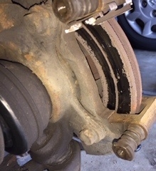 I attached a few pics. In the first pic, I circled the slid pins. They should be easy to move in and out. If they are not, remove them, clean both the pins and where they mount, and then using brake component grease, grease them, making sure they slide easily.
