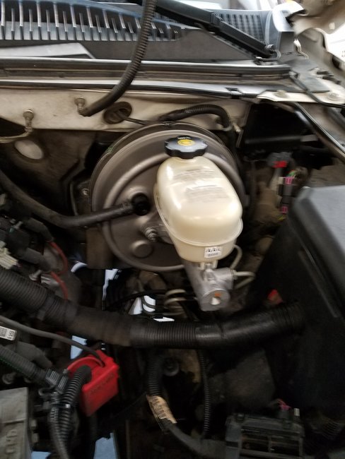 I replaced my brakes (rear drums and shoes, front rotors. Pads I replaced about five months ago, left them on.) I wanted to flush some old fluid out so I went to bleed the lines. My front two caliper bleed screw were stripped and I ruined them even further over the course of two days trying to get them off with everything I had. Went and bought two new calipers. Replaced calipers, guide bolts, banjo bolt. (Calipers are on the correct side, bleeder on top) when I finished I bled the brakes. (RR, LR, RF, LF) until all visible air was out. (Went through two bottles of fluid) Hopped in truck and felt pedal with truck off. Felt nice and solid. I was feeling good. Cranked up truck, pedal sank to the floor. Not good. Bled two more times all the way around to be sure. No luck. Took to shop. They bled forever. No better. They said either master cylinder or booster. I argued about the booster because pedal was soft and not rock solid. I pulled my booster line off after I limped it home and heard a heck of a vacuum release. So I assumed booster was good. Decided to replace master as I suspected a busted seal. (Take to mind I had no issues other than a slightly spongy pedal before all of this work). Took master out and sure enough the front seal closest to the booster was frayed and torn all the way around. Good right? I bench bled the new master, installed it to the booster and bled the lines at the master. I then bled all four wheels again, just shortly checking for air. Hop in truck and pedal still sank to the floor. This is where I am at. I do have a new strange symptom now. I was in my driveway and drove the truck back and forth, five feet or so applying the brake and a couple of those times the brakes locked on when in drive with no throttle and it actually pulled to the right once when I pulled forward. I did one last check by pulling the master off the booster (lines still attached) and felt the piston was resting against the snap ring (as in it hadn’t gotten stuck in the depressed position). I’m just asking for help now because I’m now getting confused as to what could be going on.