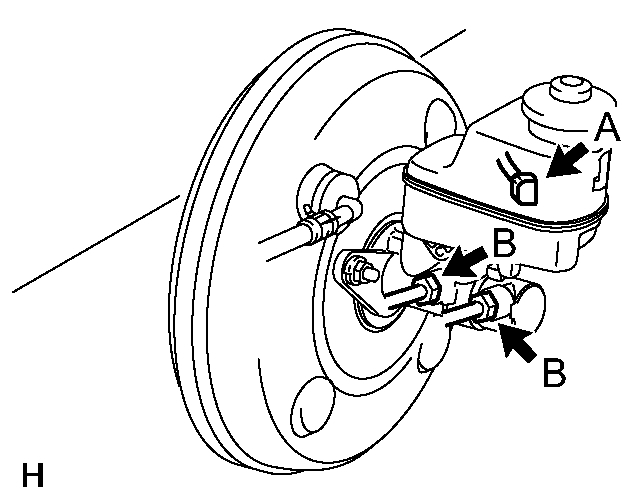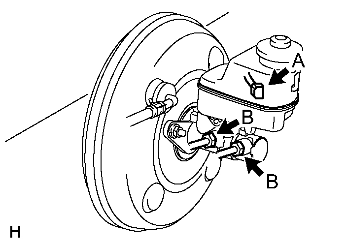 (c) Using SST, disconnect the 2 brake lines labeled B from the master cylinder.