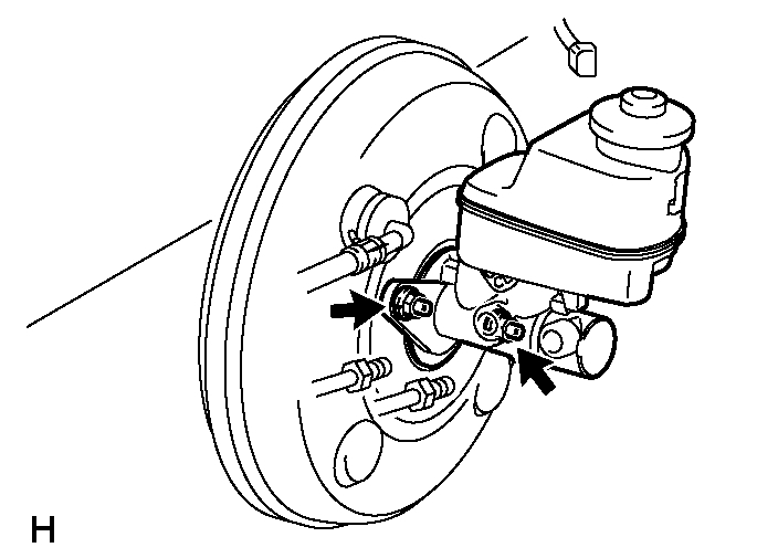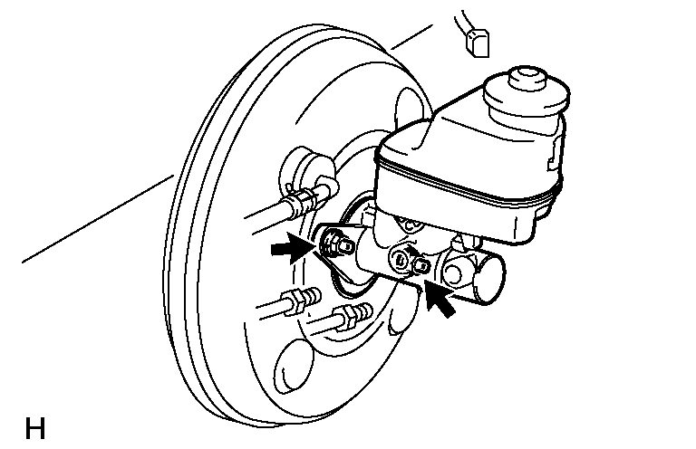 (b) Install the master cylinder to the booster with the 2 nuts.