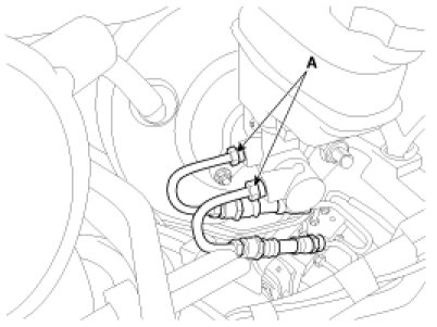 5. Disconnect the brake tube (A) from the master cylinder by loosening the tube flare nut.