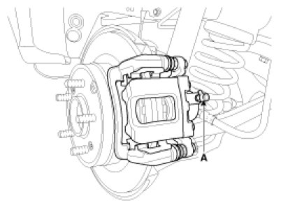 3. Loosen the right-rear brake bleed screw (A) to allow air to escape from the system. Then tighten the bleed screw securely.