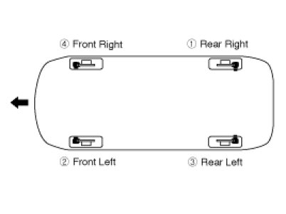 4. Repeat the procedure for wheel in the sequence shown below until air bubbles no longer appear in the fluid.