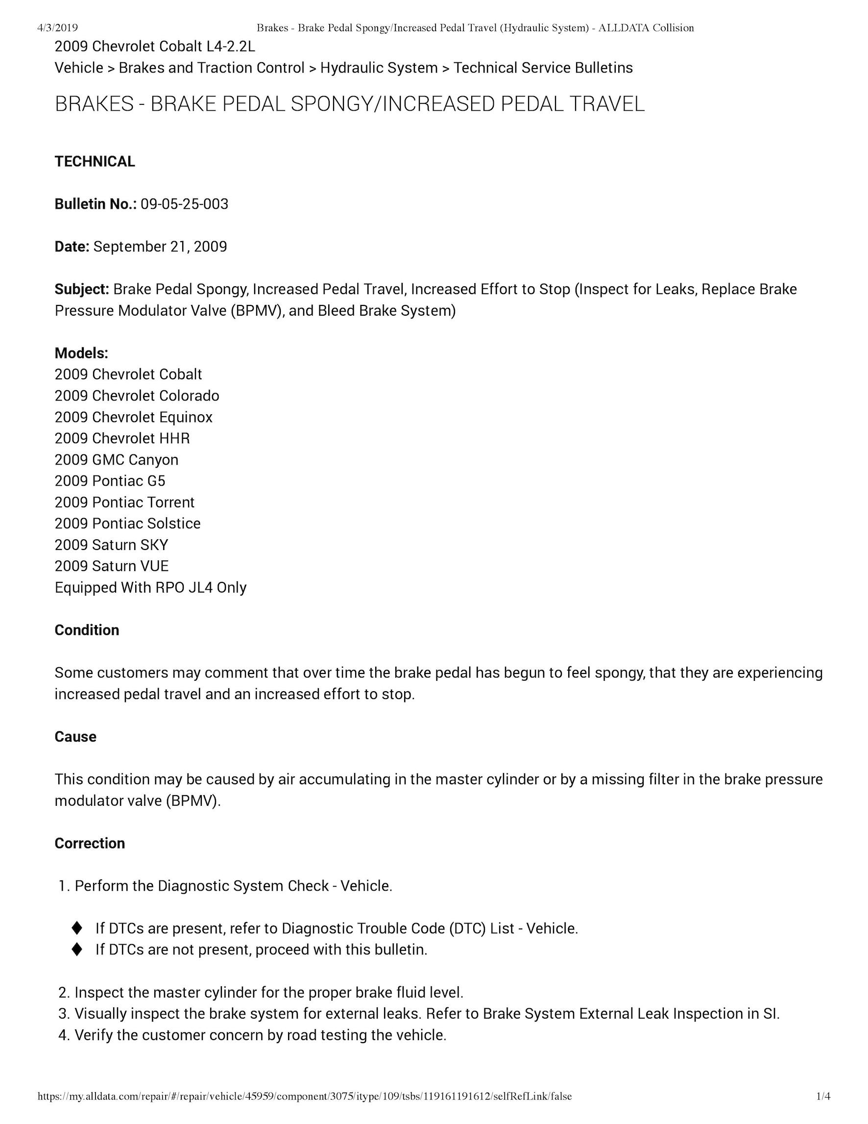 * Brake Pressure Modulator Valve (BPMV)-The BPMV contains the hydraulic valves and pump motor that are controlled electrically by the EBCM. The BPMV uses a 4 circuit configuration with a diagonal split. The BPMV directs fluid from the reservoir of the master cylinder to the left front and right rear wheels and fluid from the other reservoir to the right front and left rear wheels. The diagonal circuits are hydraulically isolated so that a leak or malfunction in one circuit will allow continued braking ability on the other.