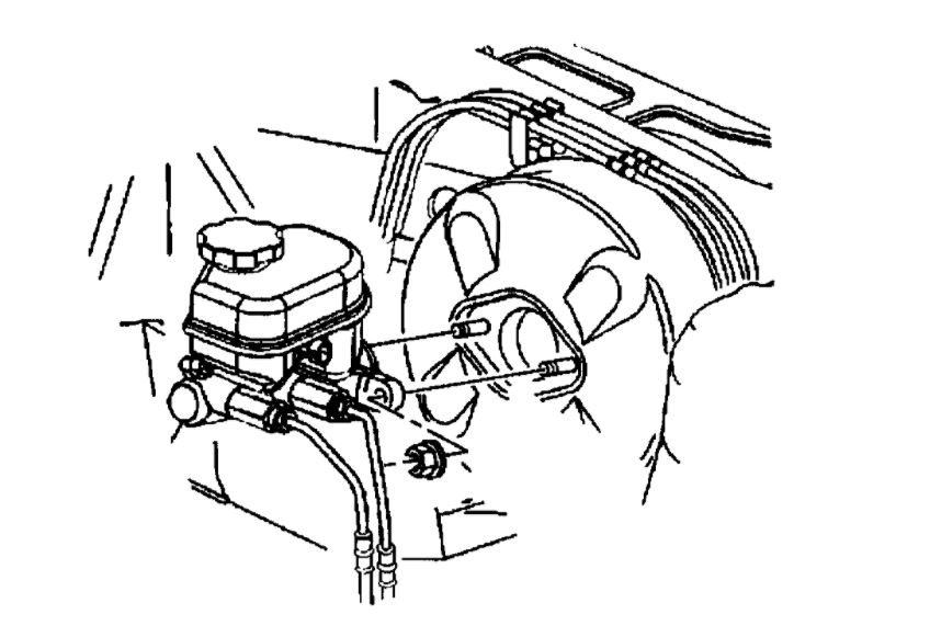 6. Remove the reservoir from the master cylinder if it is to be reused on a replacement master cylinder.
