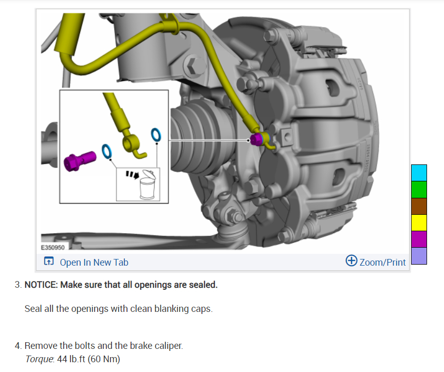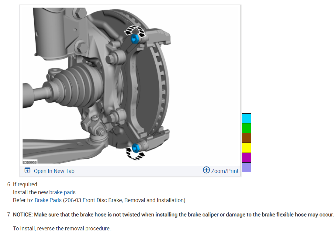 Notice: Make sure that the brake hose is not twisted when installing the brake caliper or damage to the brake flexible hose may occur. This information is available in car repair manuals such as ALLDATA. Check out the images (below). Let us know if you need anything else.