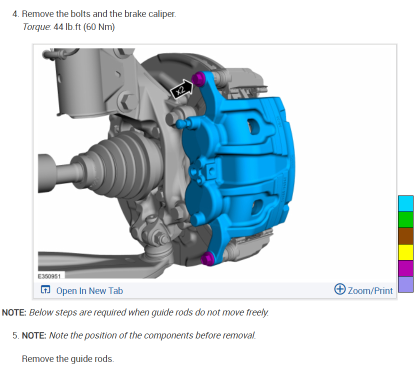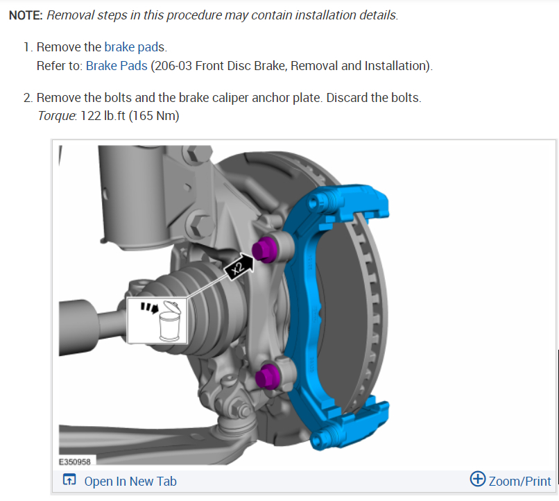 Sure, here are how the brake job is done with brake torque specs. Make sure to service the brake caliper slides which is important for proper brake performance and even brake pad wear. Also, it says the caliper mounting bolts are torqued to yield and that you need new ones for reassembly.