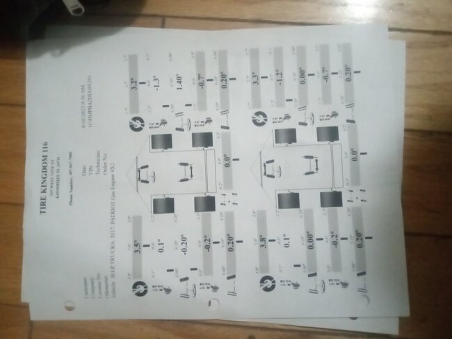 First, while it doesn't say it, it appears the top drawing is the "Before" readings, meaning what the vehicle came in with, and the bottom one is the "After" readings once all the adjustments were completed.
