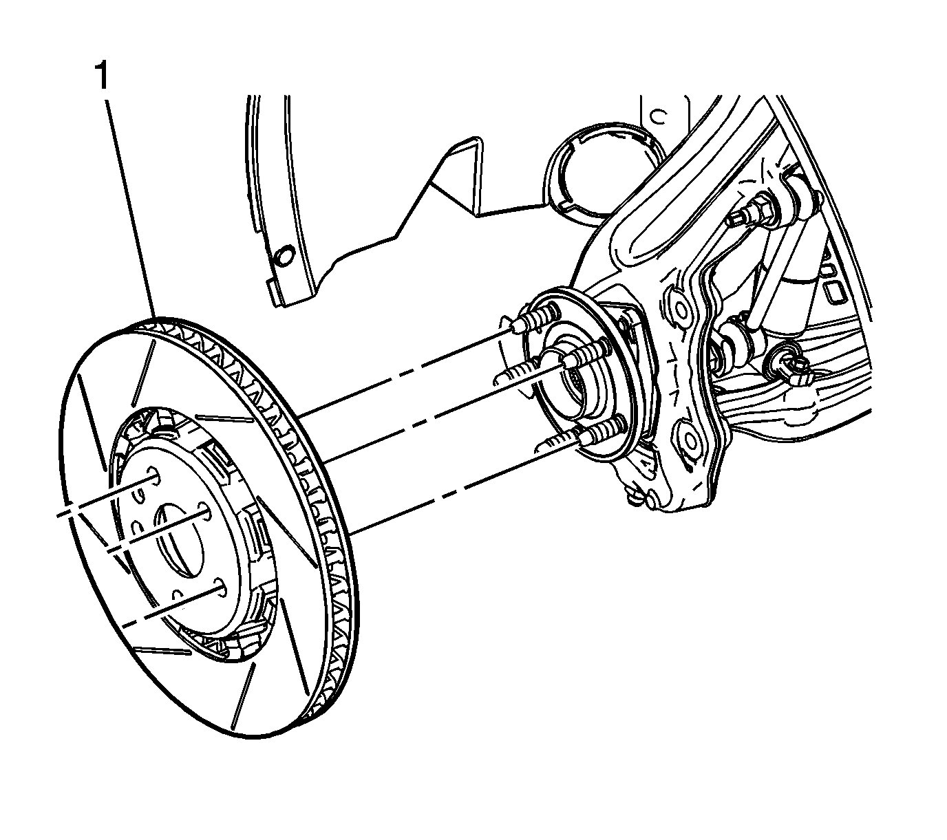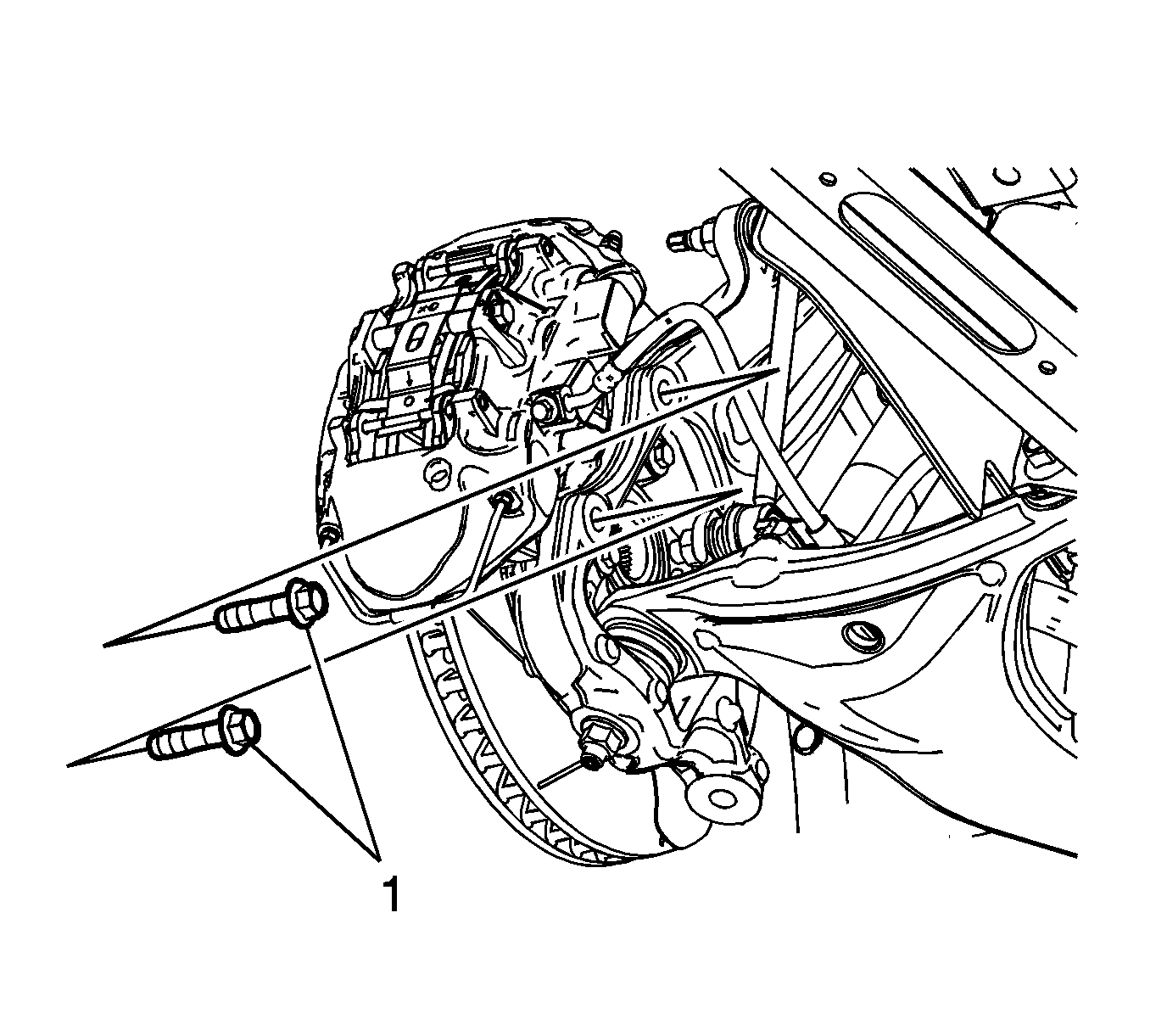 8. Remove the brake caliper (1) and support with heavy mechanics wire or equivalent.