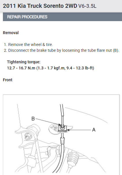 Here is the information you requested for brake line flex hose replacement. After replacing the line you will have to bleed the system to remove the air from opening the system. Here is a tutorial showing how to bleed the brake system after repair: