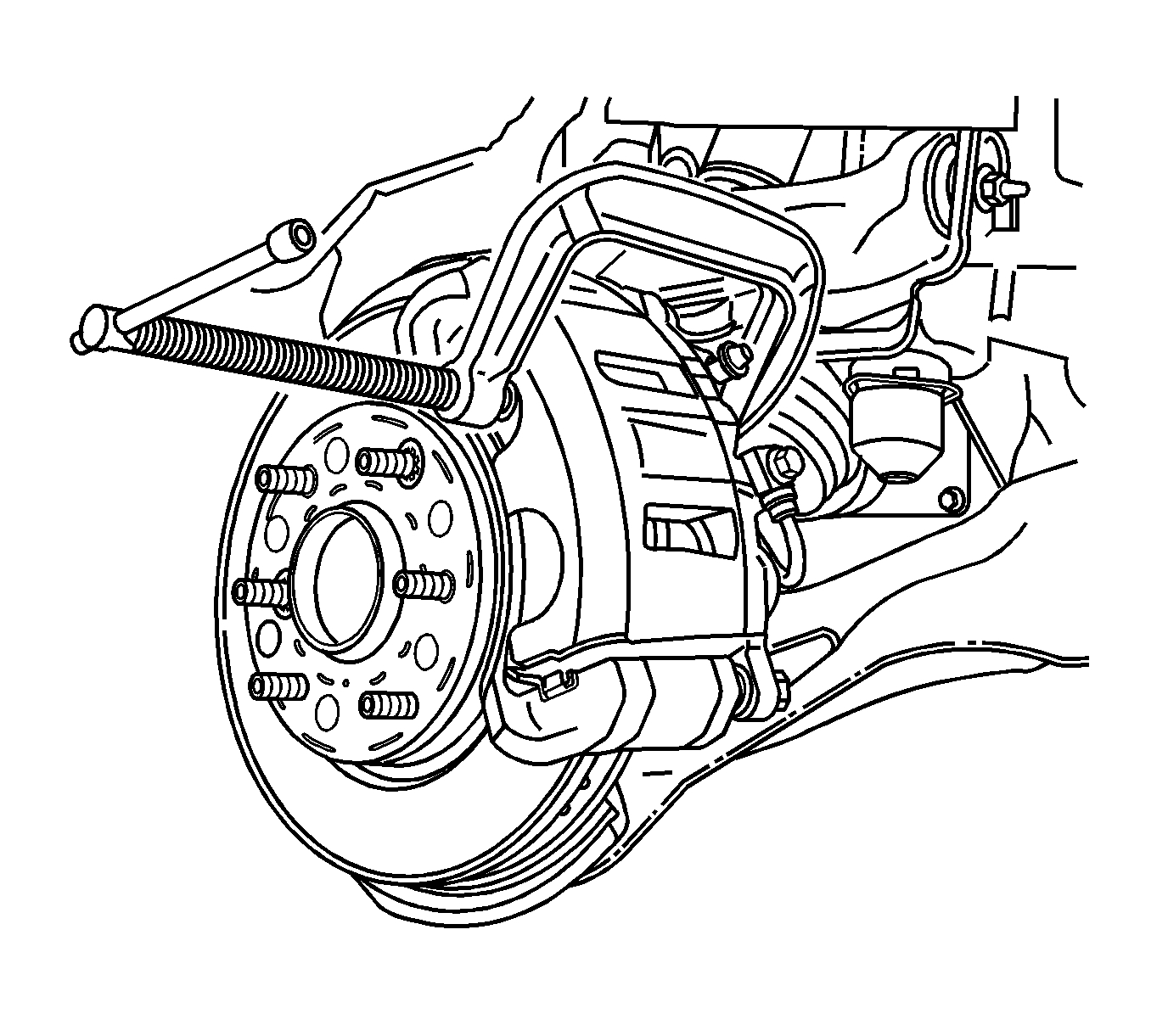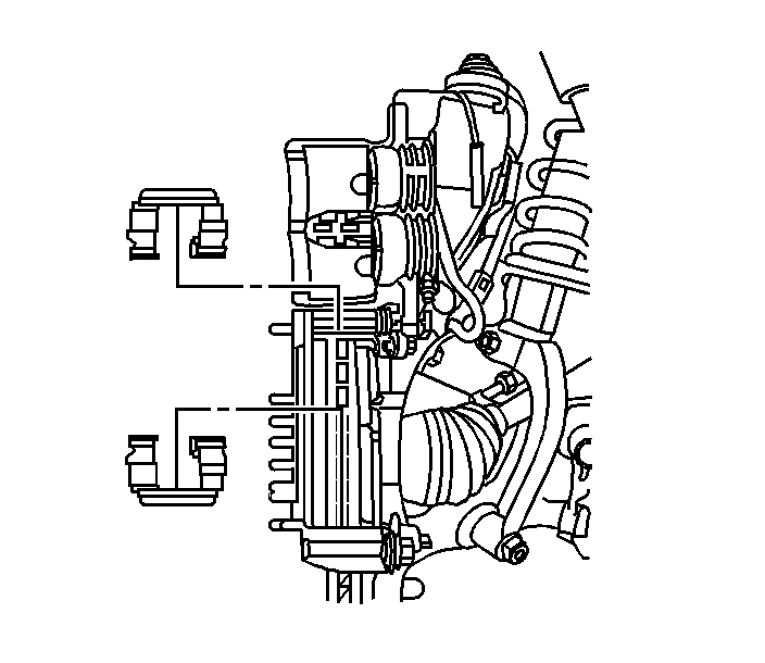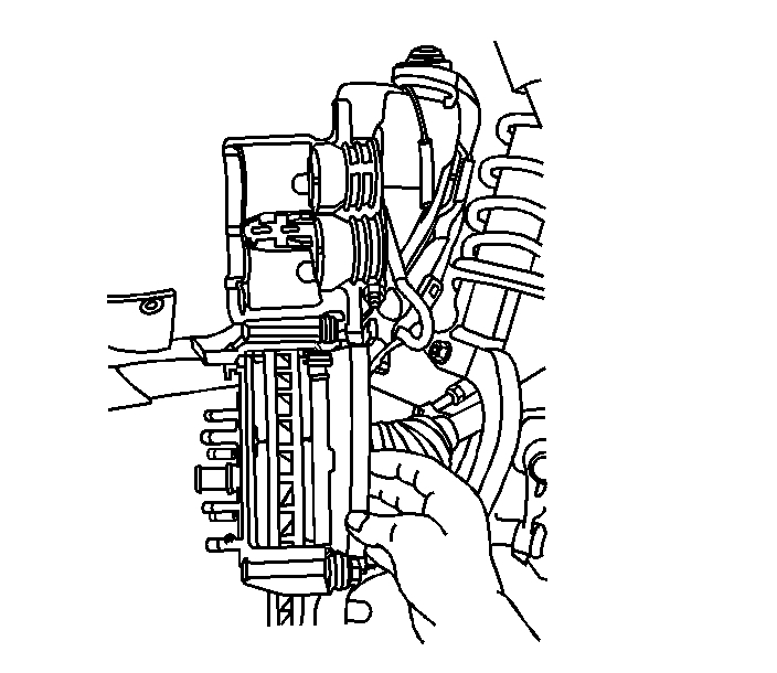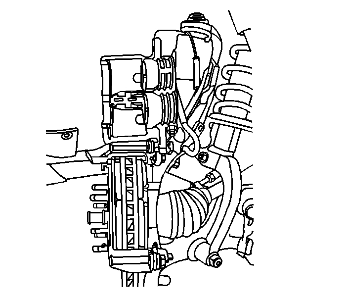 8. Remove the brake caliper and mounting bracket assembly. Refer to Front Brake Caliper Bracket Replacement.