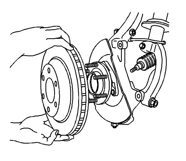 Important: If the brake rotor is not going to be replaced but just removed from the front hub, mark the relationship of the brake rotor and a wheel stud.