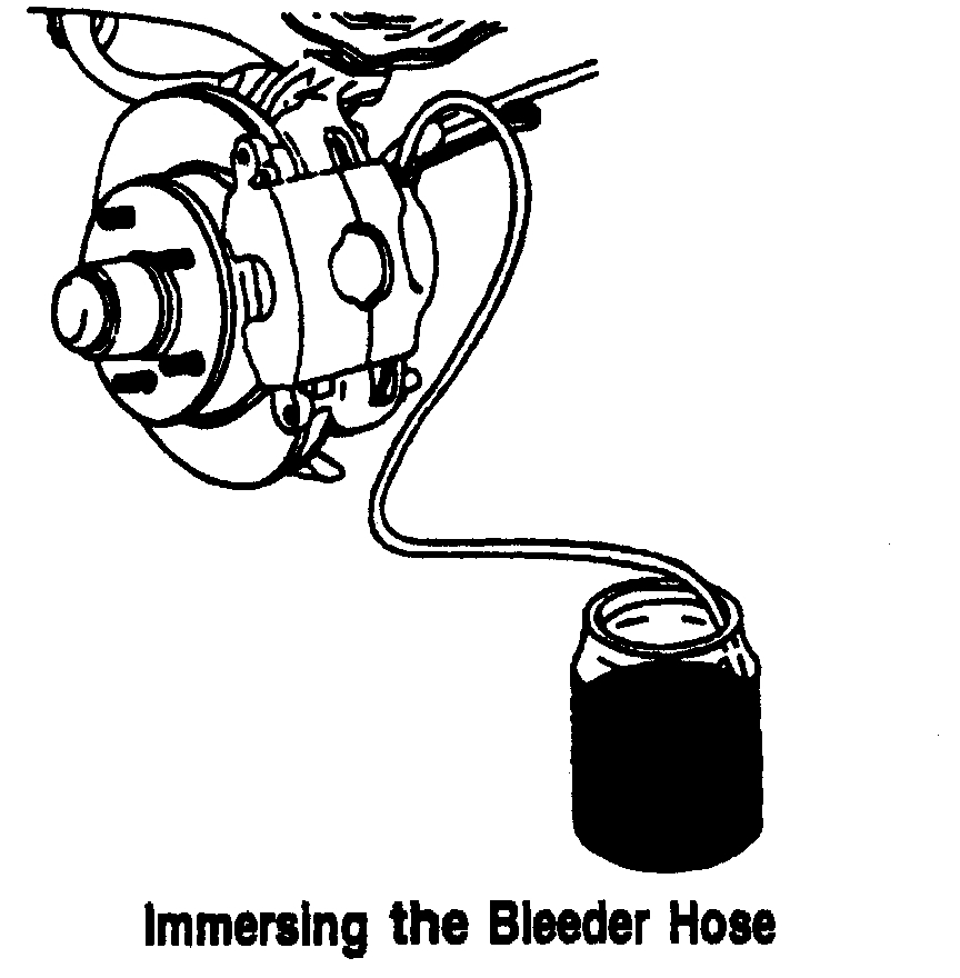 Immerse the opposite end of the hose into a container partially filled with clean brake fluid.