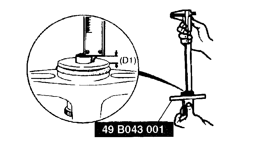 4. Subtract D1 from D2 and add 0.1 - 0.4 mm (0.004 - 0.016 inch). Using the SST, turn the nut to shorten the power booster push rod an amount equal to the sum.