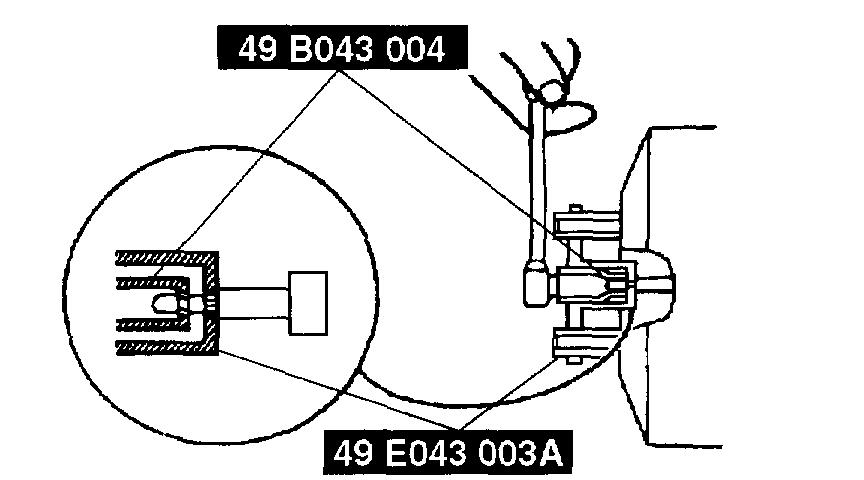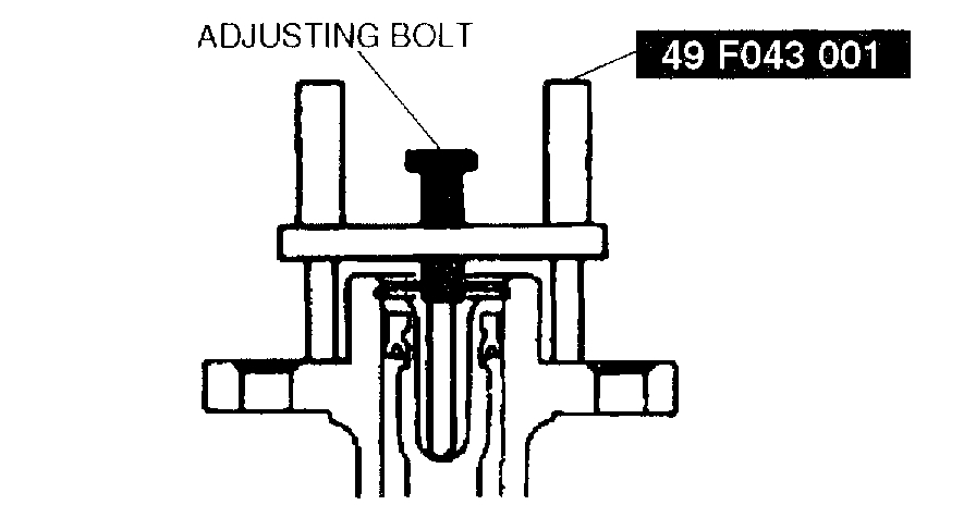 2. Turn the adjusting nut until the SST body sets evenly on the master cylinder. (Turn only enough for the body to touch.)