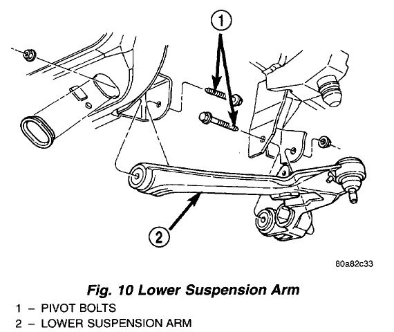 Pivot bolts through the bushings (1) Front bolt 80 ft lbs Rear bolt 140 ft lbs