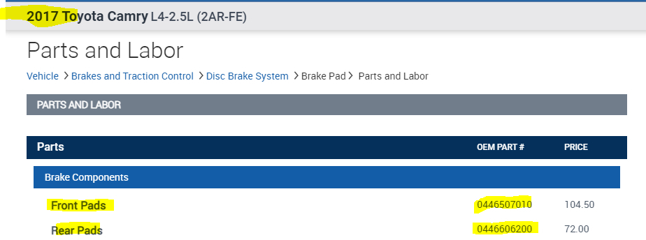 Can you please give us more information? Front or rear brake? Here are the part numbers for the pads for the 2017