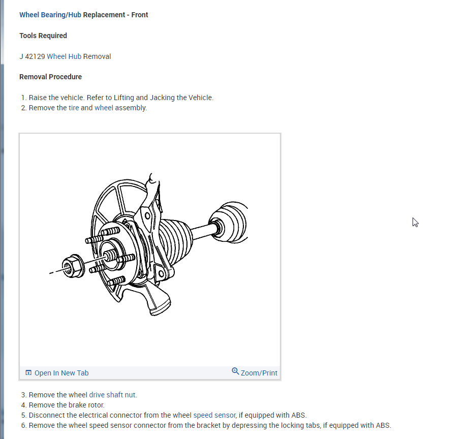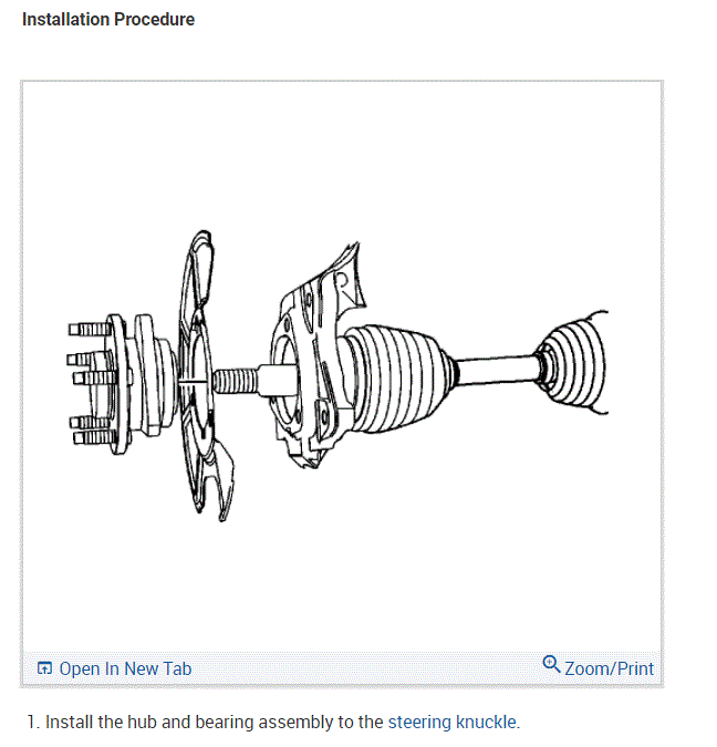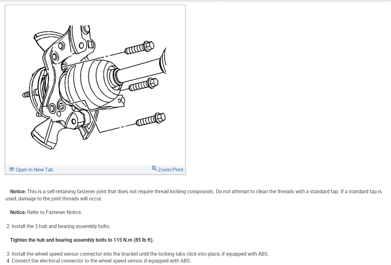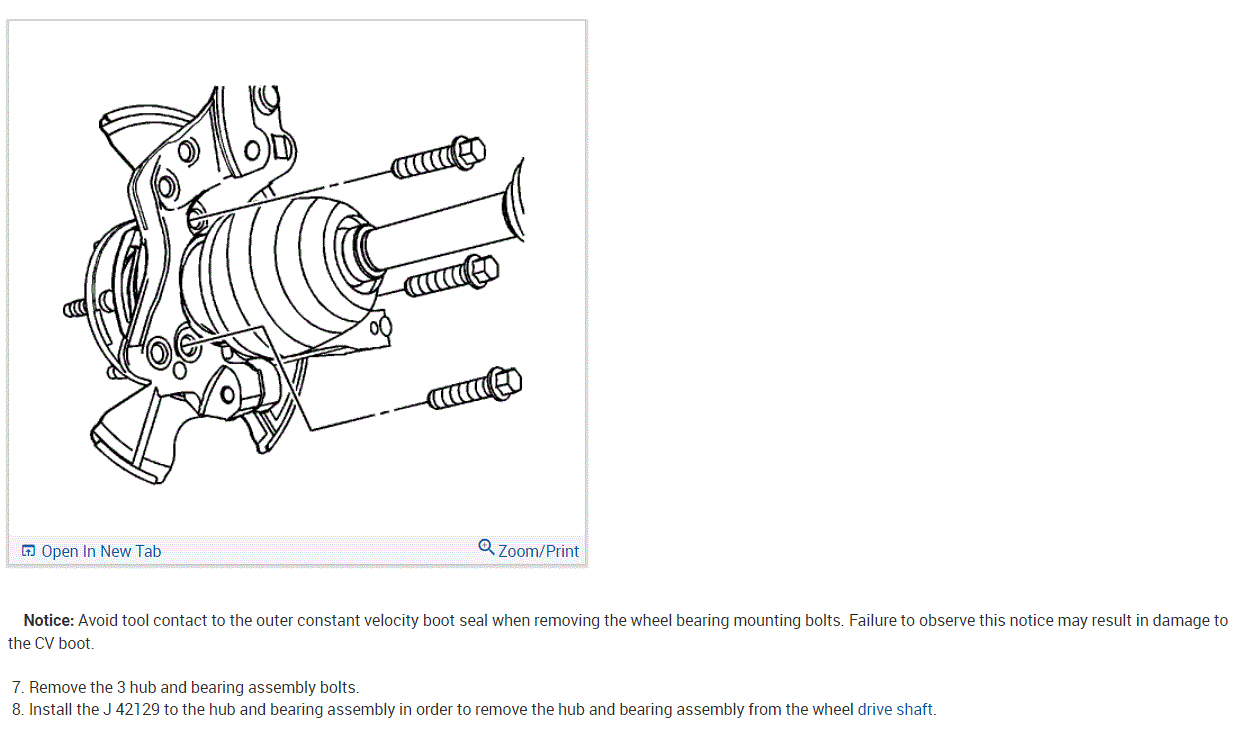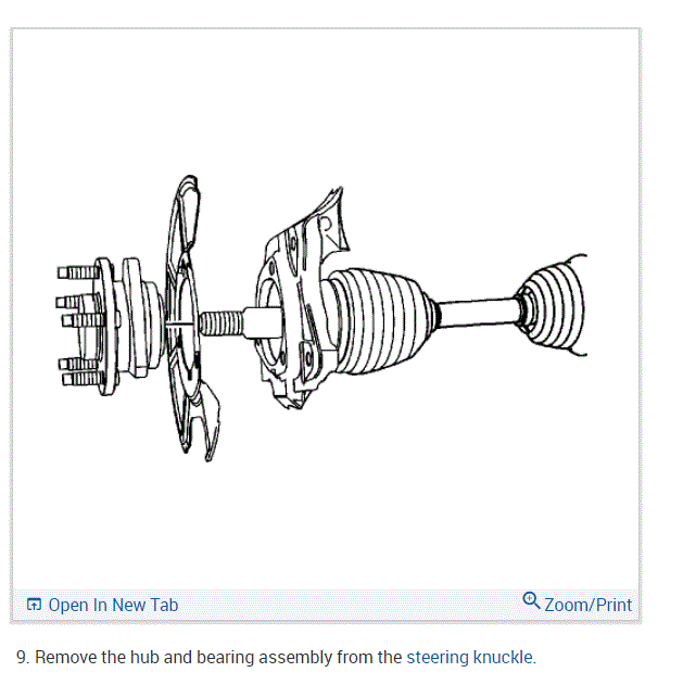 If you look at the pictures below, they include directions and pictures specific to your vehicle for hub bearing replacement.