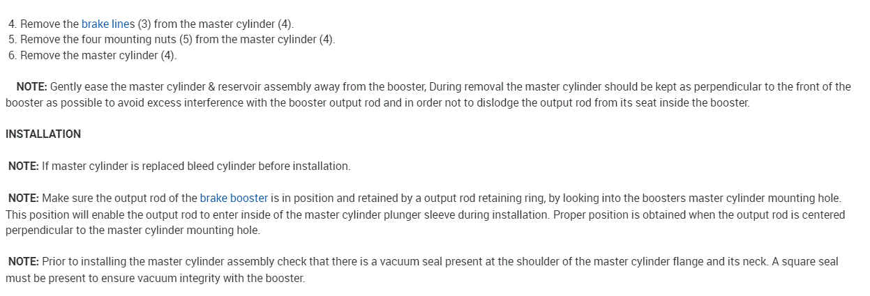 Anyway, here is a link that explains the procedure in general. This will be very helpful as a guide. Also, it explains how to "Bench Bleed" a new master cylinder, which is done prior to the installation.