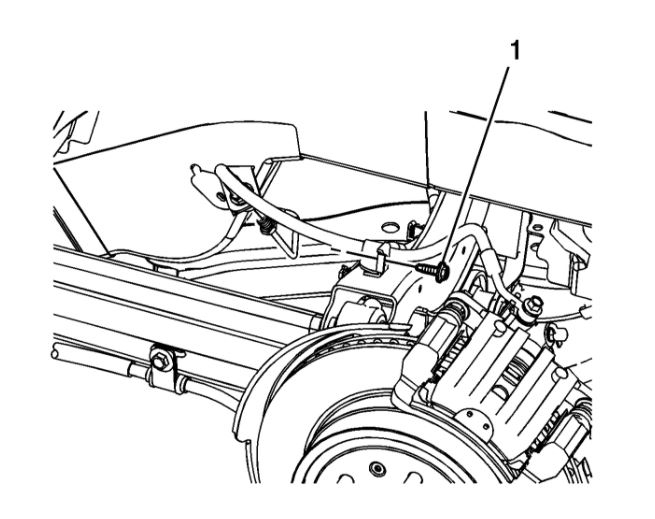 4. Remove the brake hose bolt (1) securing the brake hose bracket to the wheelhouse.