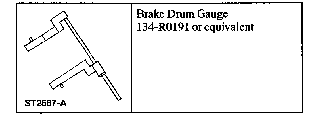 Using the special tool, measure the braking surface diameter. If the inside diameter measures more than the maximum specification shown on the outside of the brake drum, install a new brake drum.
