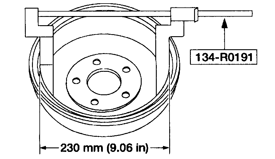 3. NOTE: If new rear brake shoes and linings are being installed, resurface the brake drums to remove glazing and to ensure an equal friction surface from side-to-side. Resurfacing will also correct out-of-round and bell conditions.