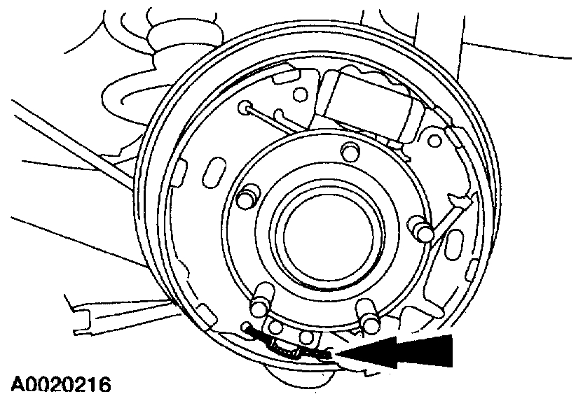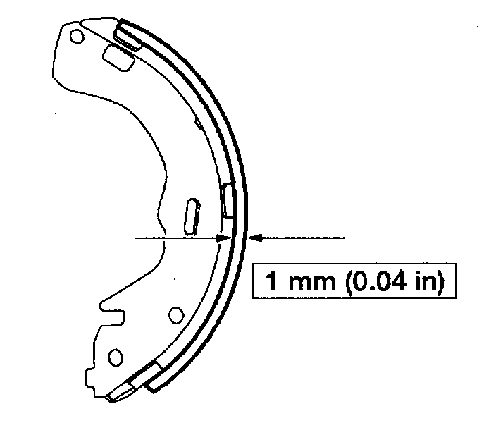 11. Inspect the rear brake shoes for minimum thickness above the backing plate, and install new as necessary.