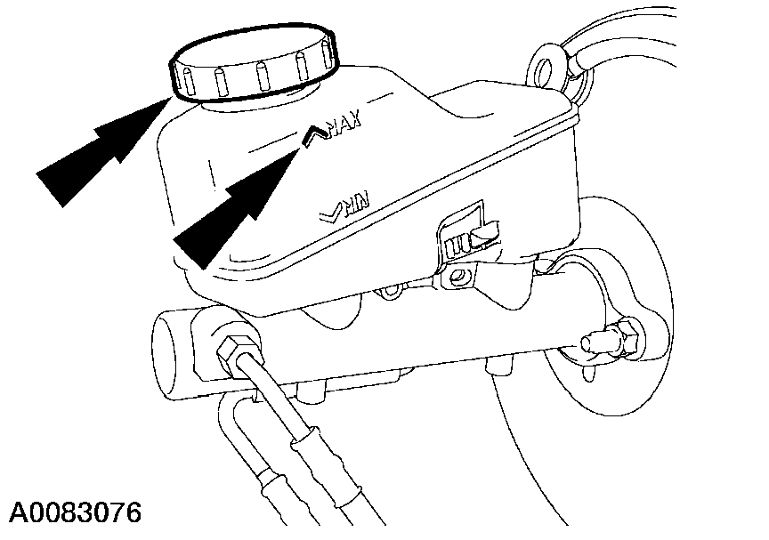 1. Clean the area then remove the brake master cylinder filler cap and fill the brake master cylinder reservoir with the specified brake fluid.