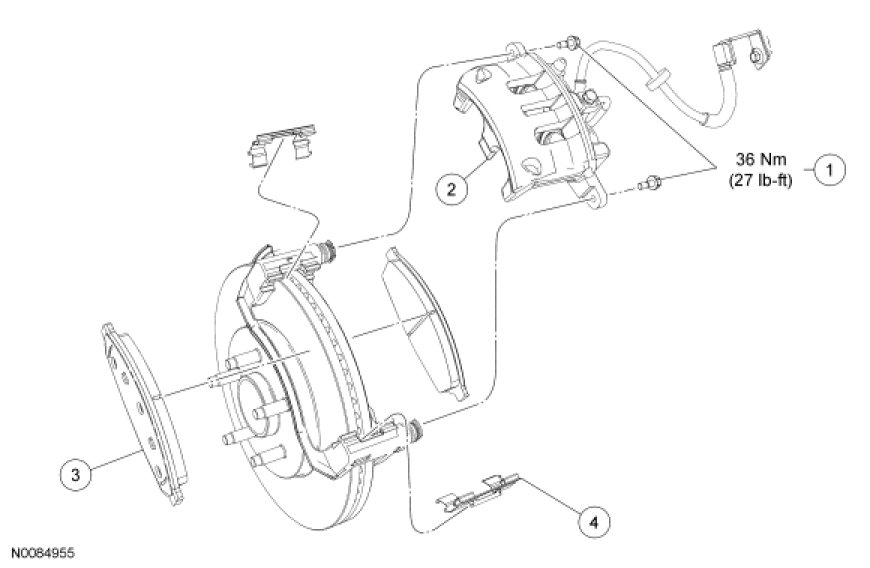 NOTICE: Do not allow the brake caliper to hang from the brake hose or damage to the hose may occur.