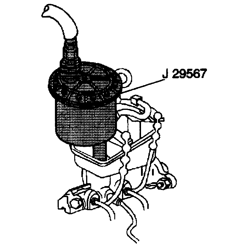 4. Install the J 29567 Brake Bleeder Adapter to the master cylinder.