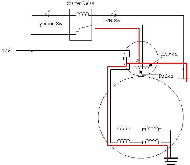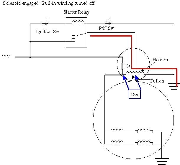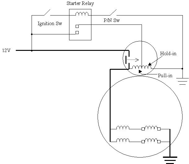 The third cause is much less common, and very elusive. First the circuit operation must be explained. The first diagram is from the Notes Pages I handed out in class. It shows a typical starter circuit.