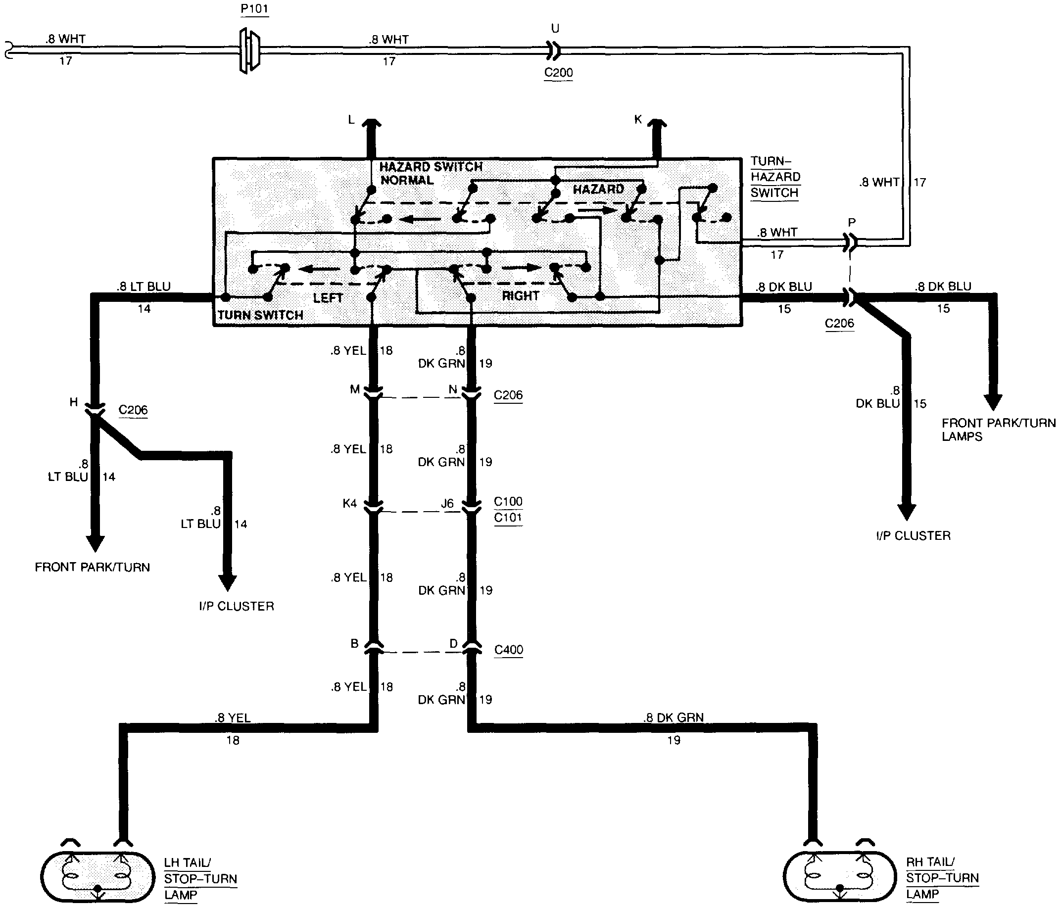 Also, I have attached the wiring schematics for the brake light system. Check grounds, make sure the switch is properly adjusted and putting out power when energized, and make sure there are no broken or damaged wires.