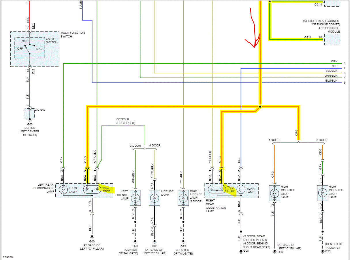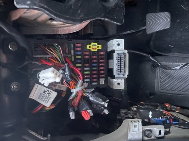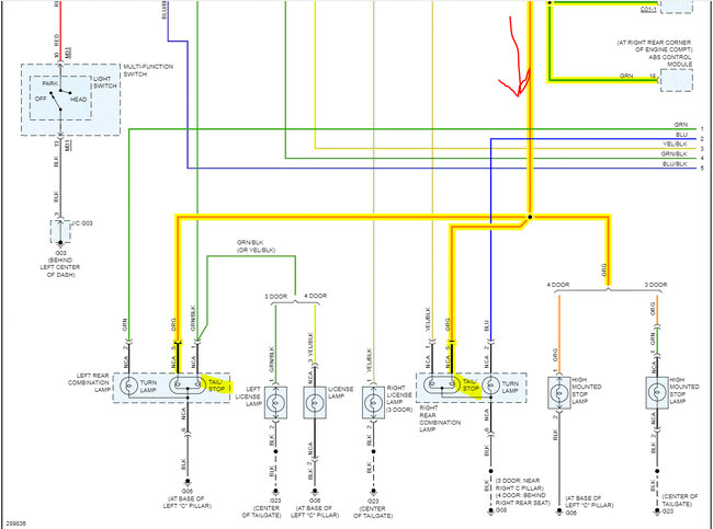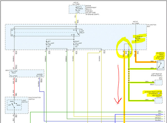 All other lights work. Bulbs replaced, fuse and brake pedal switch are good and replaced anyway, no help. There is power at the brake pedal switch. Taillights share ground in the rear, and they work so the ground is good. Pictures- wire mess which is why I would like to (if possible) jump around this mess from the brake pedal switch to the wires by the door (the other picture). Problem, I do not know which wire to jump to, or if it will work doing it that way. I do not want to accidentally jump to an airbag wire and poof (trial and error is not an option). I do not mind rigging it because this car is already rigged and I need the car working (used cars are expensive, so I bought this). Runs good and good on gas, cop was nice enough to let me know about the brake lights and follow me home. Any help would be appreciated. Thank you.