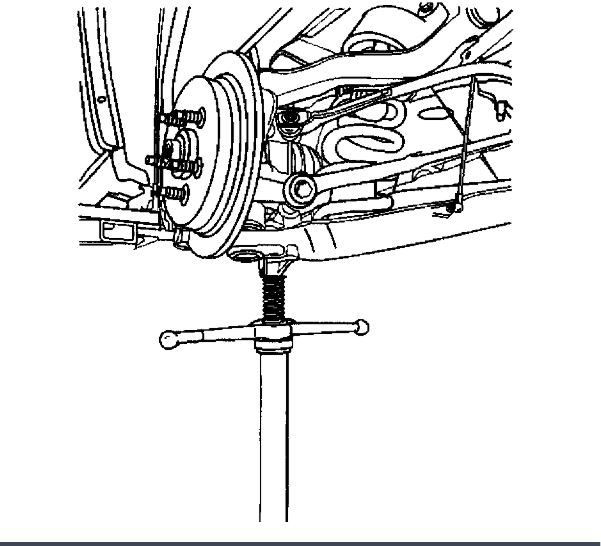 10. Use the utility stand in order to lower the control arm and relieve the coil spring tension.