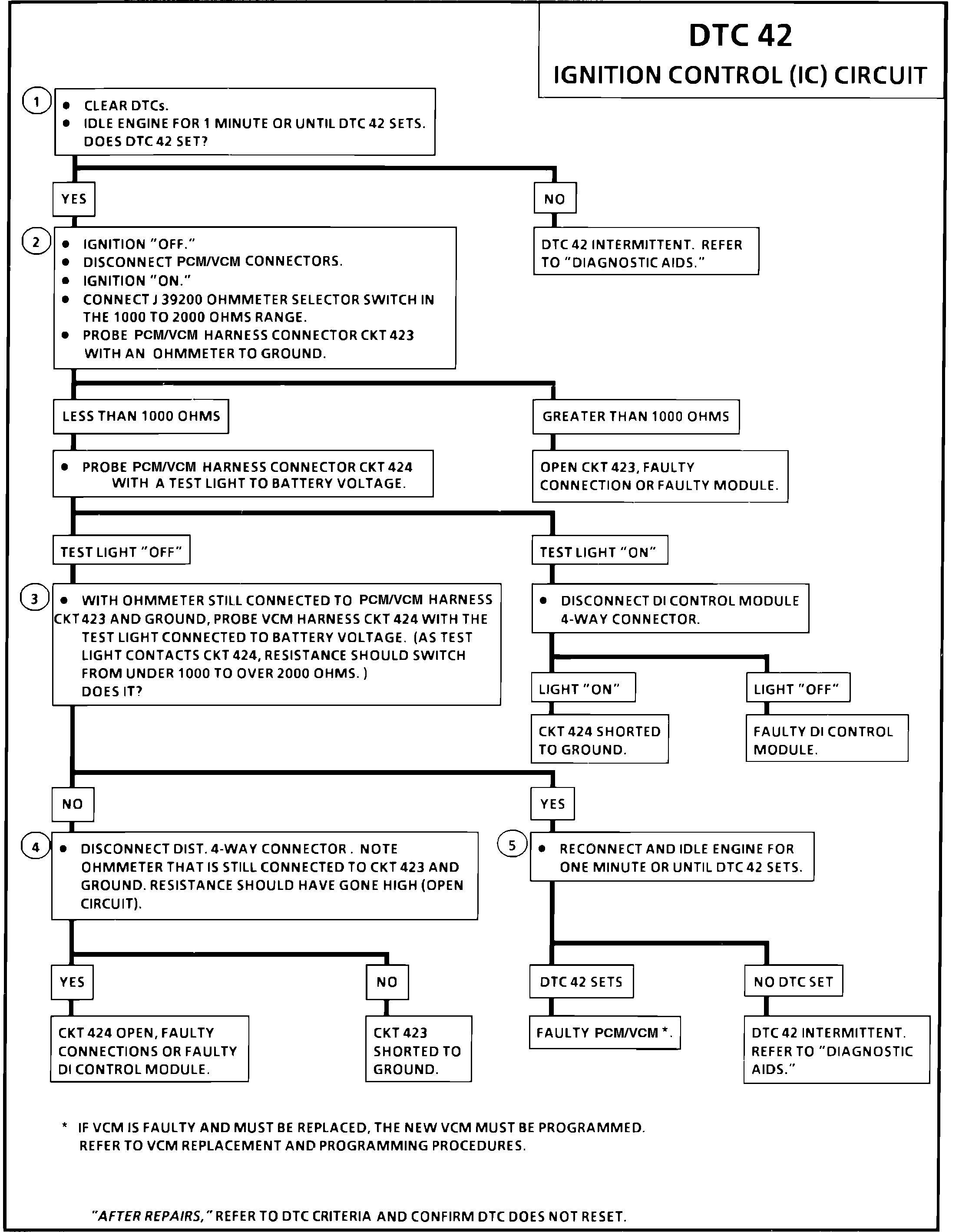 5. Confirms that DTC 42 is a faulty PCM/VCM and not an intermittent in CKT's 423 or 424.