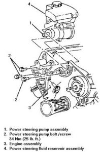 3.Remove the serpentine drive belt from the power steering pump assembly.