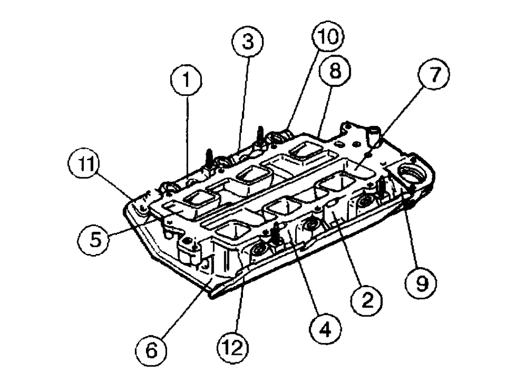 Tighten the lower intake manifold bolts in sequence (1-12) to 15 Nm (11 ft. lbs.).