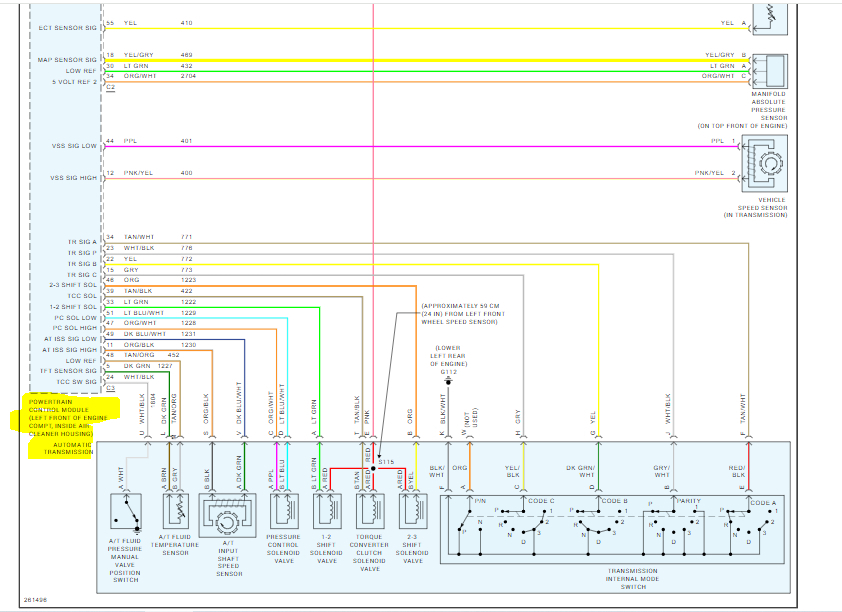 If it isn't there, there may have been a different transmission used. If that is the case, the transmission is controlled by the powertrain control module (PCM/ECM) which is located in the air cleaner housing. See pic 1 below.