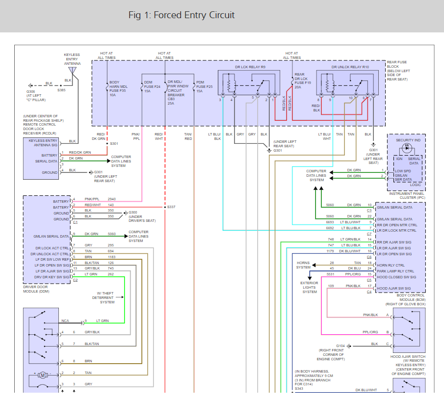 Any of these concerns may be caused by an internal fault with the transmitters and/or the Remote Control Door Lock Receiver (RCDLR) software/hardware. Replace the RCDLR module and the RCDLR antenna.