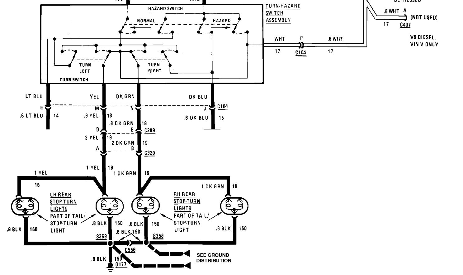 There are only 5 wires that go from a connector on the left side of the fuse block under the dash, that go all the way to the back, inside the trunk, to another connector. The 5 wires from that connector go directly to the tailights, turn signal lights, ect. Of course, the wires are all bundled up and spliced.