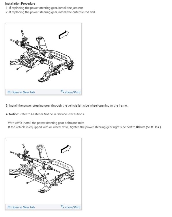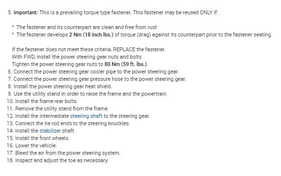 Tighten the power steering gear nuts to 80 Nm (59 ft. lbs.)