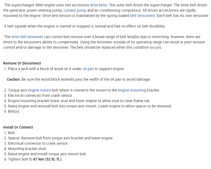 I need to replace the belts on my supercharged V-6 Buick Riviera. The factory shop manual details how to disconnect the engine mounts and lift/lower the engine, which I can do. However, when it comes to replacing the belts, it simply says remove and replace! Now, I realize there are tensioners used to maintain belt tension. My question is, how do I release the tension supplied by these tensioners? My "common sense" says to use a socket/breaker bar to move the tensioner in the proper direction, but unless the threads on the pully bolt are "backwards", I worry than I'll just loosen the pully, and nothing more. Please advise me on the proper way to do this.