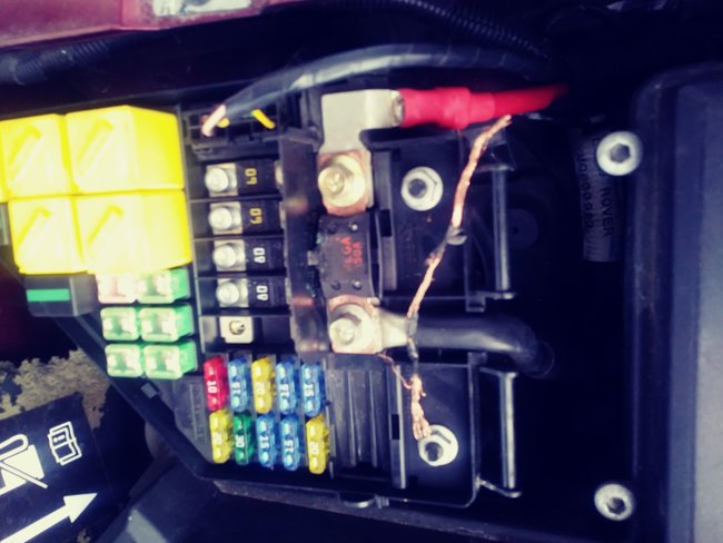 Unfortunately, I don't think there is any way that we would be able to tell you what that wire would go to because it looks out of place. However, it definitely does not look like it was there from when the vehicle was built. Are their any aftermarket parts like lights, radio, speakers, alarm system, back up camera? The reason is, this where they would splice into to get power and if they wire is burnt then they most likely did not secure it properly or they used an undersized wire. Basically, a burnt wire is caused by to much current running through the wire and it heats up and melts then burns.