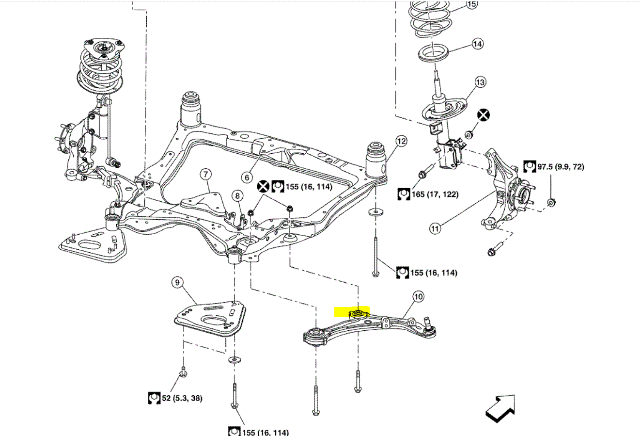 Also, if you look at the pic below, I highlighted the two bushings I believe you are referring to. The pic is for a four cylinder vehicle, so if you have the v6, it may be different. However, when I get this type of design for repair, usually there are no bushings available and the entire control arm needs replacing.