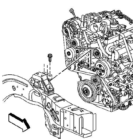 To access the belt, you will need to remove the engine mounting, see image 2.