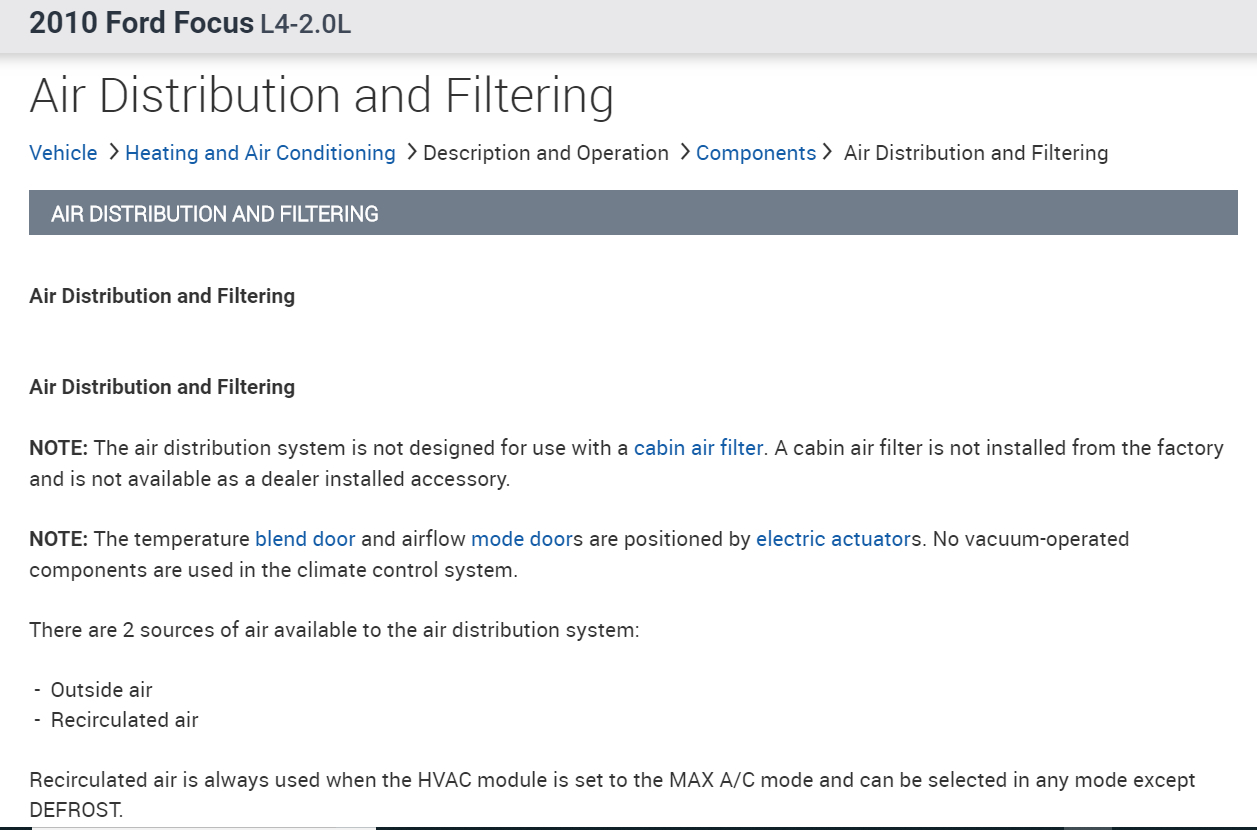 Can you confirm that this Ford Focus SE Sedan (four door) has a cabin air filter?
