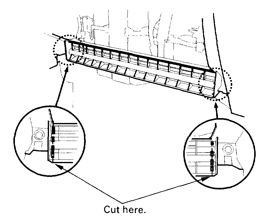 2. Cut the plastic cross brace in the glove box opening with diagonal cutters in the area shown, and discard it.
